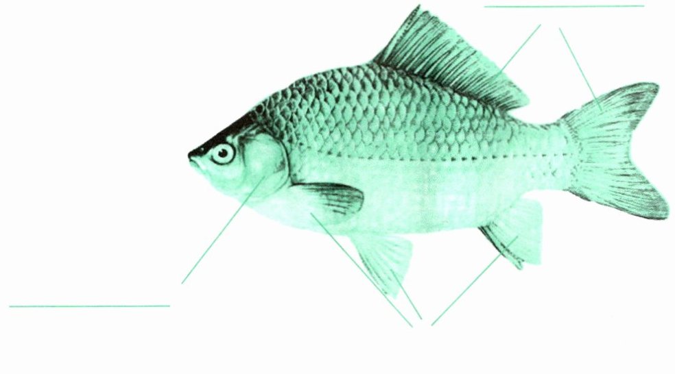 (从上到下、从左到右依次为)背鳍、尾鳍、鳃、胸鳍、腹鳍