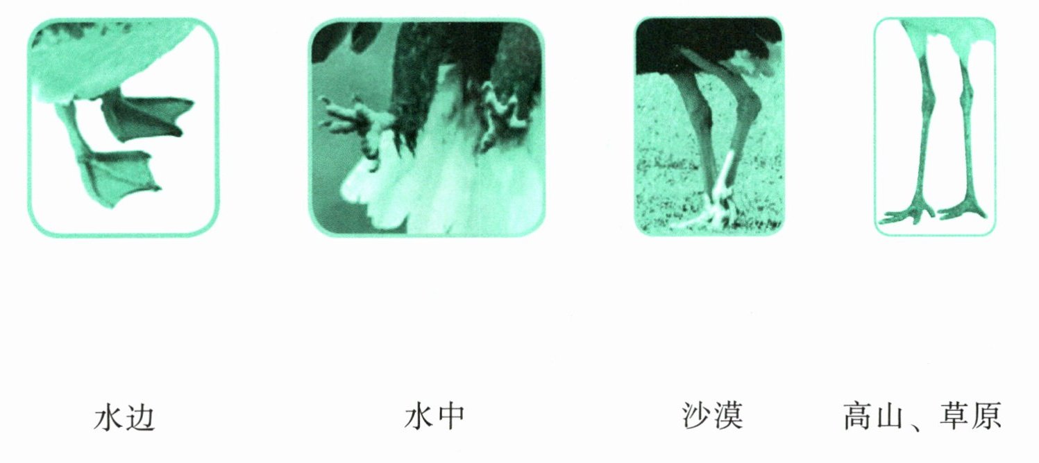 二、我会连(将不同的鸟的足与其生活环境连起来)