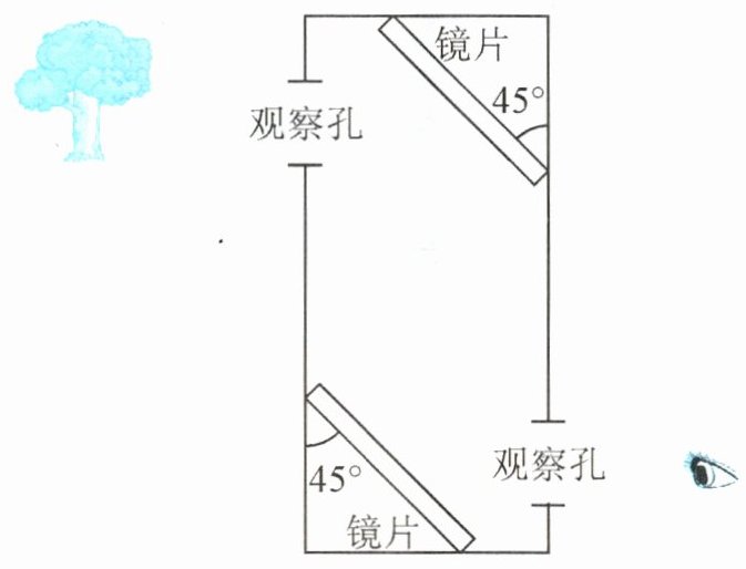通过潜望镜能看见地面上的物体。请你用带箭头的线段代表光线,画图解释潜望镜的工作原理。