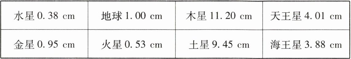 |金星 0.95 cm|火星 0.53 cm|土星 9.45 cm|海王星 3.88 cm|