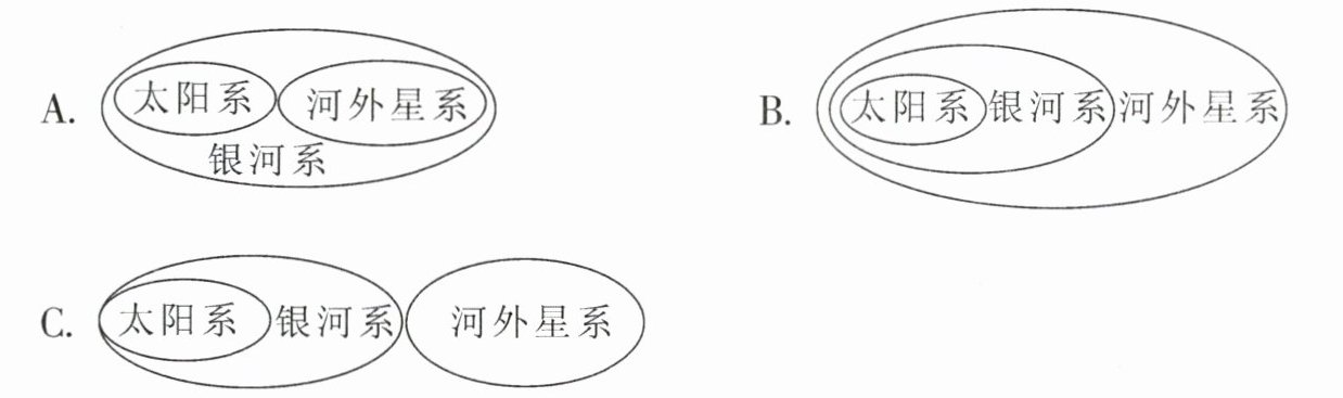 3. 下列能正确反映太阳系、银河系、河外星系三者之间关系的是 ( )。