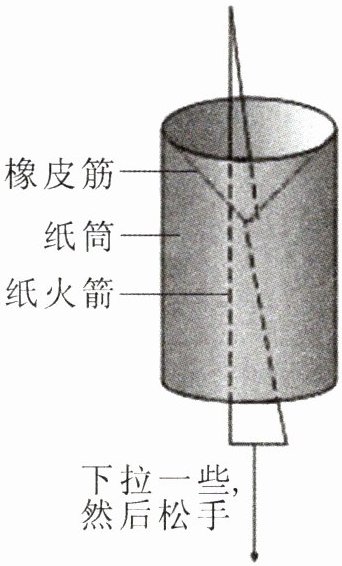 制作方法:将一张纸卷成圆筒状,用胶水粘好。在纸筒口固定一根橡皮筋,橡皮筋上竖直固定一个小三脚架,小三脚架下方连着一根细线。