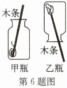 6. 将装满氧气的集气瓶按如图所示放置(固定装置略去),并将燃着的木条伸到接近瓶底处,木条复燃,且在甲瓶中燃烧比在乙瓶中剧烈。由此可说明氧气具有的性质:(1)