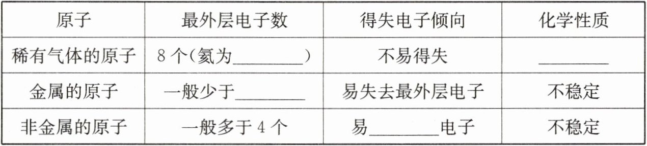 5. 原子的化学性质与原子最外层电子数的关系。