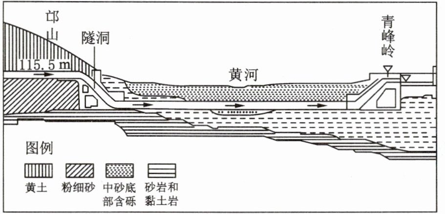 南水北调进入穿黄段(如图)时,对工程质量是一个严峻的考验,因此该段的隧洞使用了钢板、混凝土和高强度钢丝加固而成。