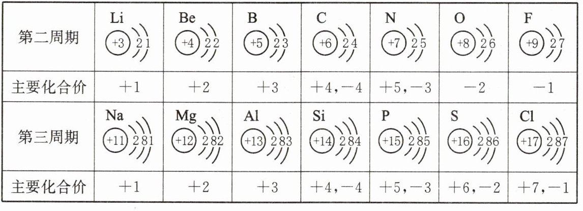 。(3) 总结此表中原子结构与元素化合价或周期数的关系(写两条):