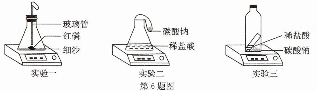 6. 某化学兴趣小组用气密性良好的不同装置进行下列实验,验证质量守恒定律。