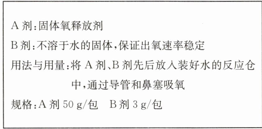 B 剂:不溶于水的固体,保证出氧速率稳定