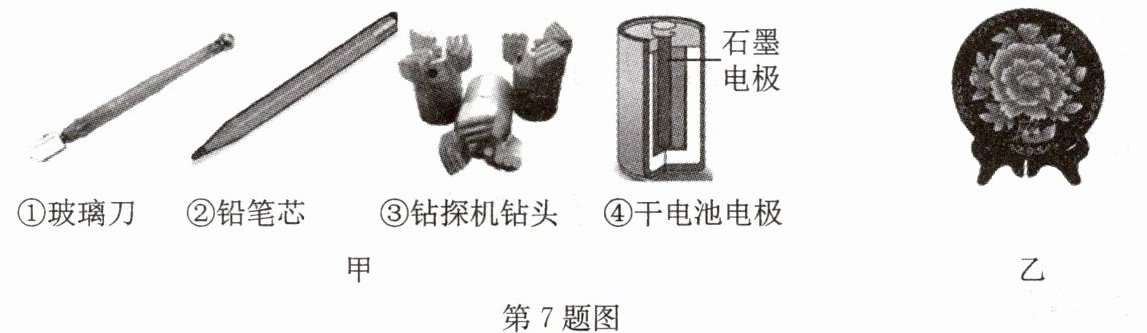 (1)如图甲,在各物体的用途中,利用了石墨能导电的是