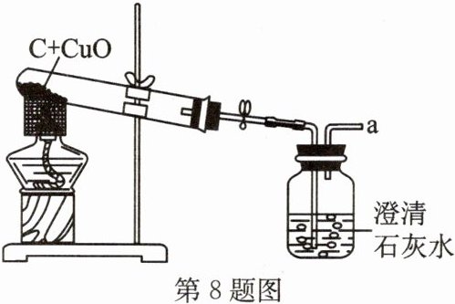 8. 用过量的木炭粉末还原氧化铜的实验装置,如图所示。请回答下列有关问题。