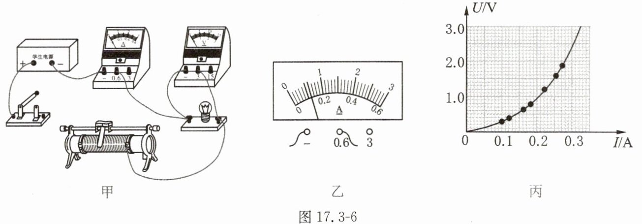 $ A $。(3) 根据实验数据绘制的 $ U - I $ 图像如图 17.3 - 6 丙所示,小灯泡未发光时的电阻可能为