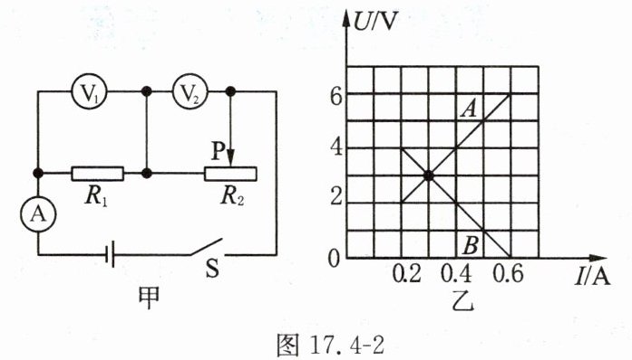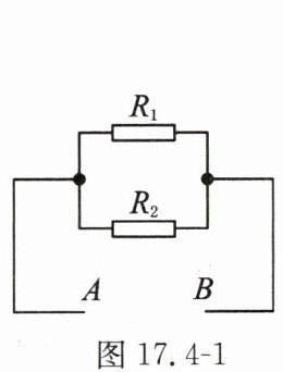3. 如图 17.4 - 1 所示,电阻 $R_1 = 10$ Ω,$R_2 = 16$ Ω,它们允许通过的最大电流分别为 $0.4$ A 和 $0.5$ A,调节 $A$、$B$ 间的电压,在保证电阻安全的前提下,电路的最大总电流为