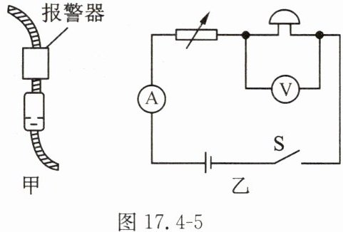 7. 小明在医院看到一种输液警报器如图 17.4 - 5 甲所示,当管内药液流完时,电铃发出报警声。报警器内有一个可变电阻,当输液管内有液体时电阻较大,无液体时电阻较小,电路如图 17.4 - 5 乙所示,则当电路正常工作时,分析正确的是(