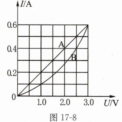 10. 在某一温度下,两个电路元件 A 和 B 中的电流与电压的关系图像如图 17 - 8 所示。由图像可知,元件 A 的电阻为