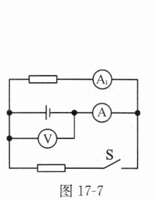 9. 在图 17 - 7 所示的电路中,电源电压保持不变,在开关 S 由断到闭合的过程中,电流表 $ A_1 $ 的示数将