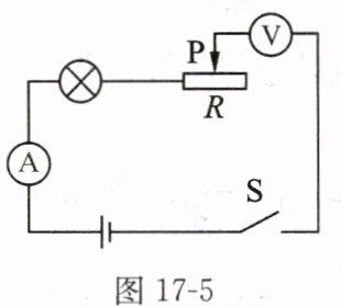 7. 如图 17 - 5 所示,电源电压恒定不变,闭合开关 S,将滑动变阻器的滑片 P 从右向左移动的过程中,电流表的示数将