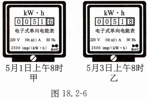 19. 念念在家中看电视时,把遥控器一摁,电视关了,可是还有一个指示灯亮着(此时,电视机处于待机状态)。学习了电能的知识后,于是她想:这时电视机是否还在消耗电能呢?如果消耗电能,具体情况又是怎样的?于是她设计了如下方案进行探究:一家外出旅游前,让电视机处于待机状态,然后拔掉其他电器的插头或关掉开关,记下时间和家中电能表的信息(如图18.2 - 6甲所示);两天后回到家中,再记下此时的时间和电能表的信息(如图18.2 - 6乙所示)。