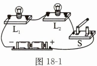 2. 将两个额定电压相同的灯泡 $ L_1 $、$ L_2 $ 串联在电路中,如图 18 - 1 所示。闭合开关后,发现灯泡 $ L_1 $ 较亮,灯泡 $ L_2 $ 较暗,其原因是(