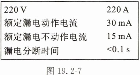 10. 如图 19.2 - 7 所示是小红家进户开关上漏电保护器的铭牌。关于该铭牌上数据的说法,正确的是(