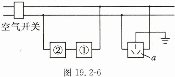 7. 如图 19.2 - 6 所示,三孔插座连接正确,图中①和②所代表的方框为电灯和开关所在位置,闭合开关电灯正常工作。下列说法正确的是(