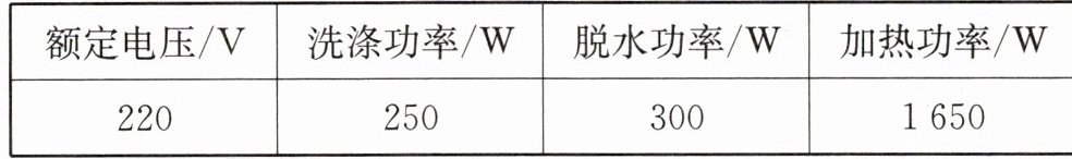 (2)洗衣机工作时的最大功率是加热功率$P_{热}=1650W,$洗衣机所在分支回路用电器总功率$P_{其他}=2150W,$则回路总功率P=1650W + 2150W=3800W,根据P=UI,$I = \frac{P}{U}=\frac{3800W}{220V}=17.27A,$根据表格,应选择C20空气开关。