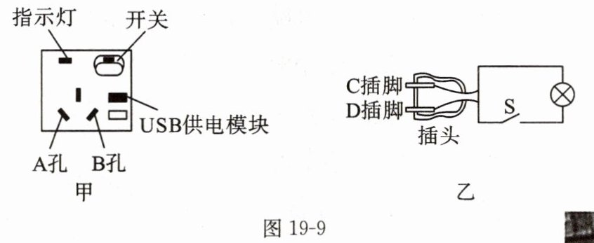线;如图 19 - 9 乙所示是一个台灯的电路示意图,为了用电更安全,建议将台灯插头的D