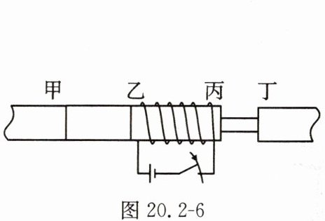 9. 如图20.2 - 6所示,根据通电螺线管周围的磁感线分布,可确定磁极甲、乙、丙、丁的极性依次是(