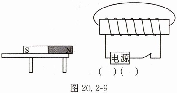 12. 如图20.2 - 9所示,条形磁体静止在水平桌面上,与通电螺线管左端相互吸引,靠近放置。
