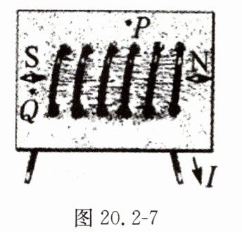 10. 小明在一块有机玻璃板上安装了一个用导线绕成的螺线管,在板面上均匀撒满铁屑,通电后轻敲玻璃板,铁屑的排列如图20.2 - 7所示。下列说法正确的是(