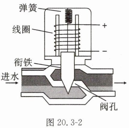 2. 全自动洗衣机的进水阀门是由电磁铁控制的,其构造示意图如图 20.3 - 2 所示。电磁铁在电路中的实质是一个