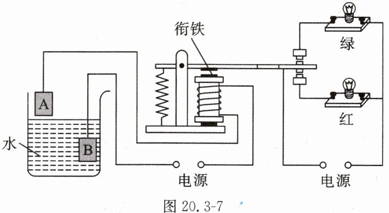 8. 如图 20.3 - 7 所示是一种水位自动报警器的原理图,当水位到达金属块 A 时(一般的水能导电),电路中(