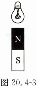 3. 我国家用电路使用的是电流大小和方向不断变化的交流电,白炽灯是一种电流通过灯丝发热发光的电灯,将强磁体靠近通电白炽灯的灯丝,如图 20.4 - 3 所示,可以观察到灯丝抖动,是因为磁场对通电导体