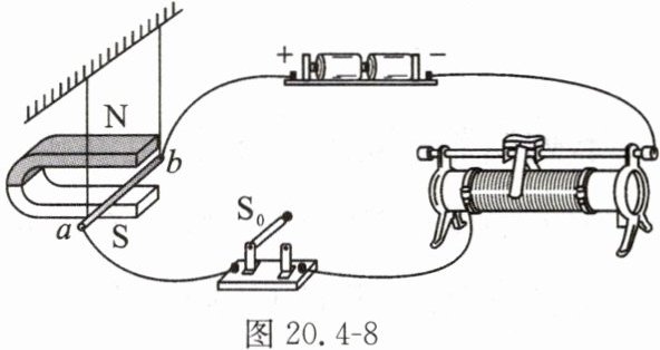 12. 如图 20.4 - 8 所示,在“探究电动机为什么会转动”的实验中: