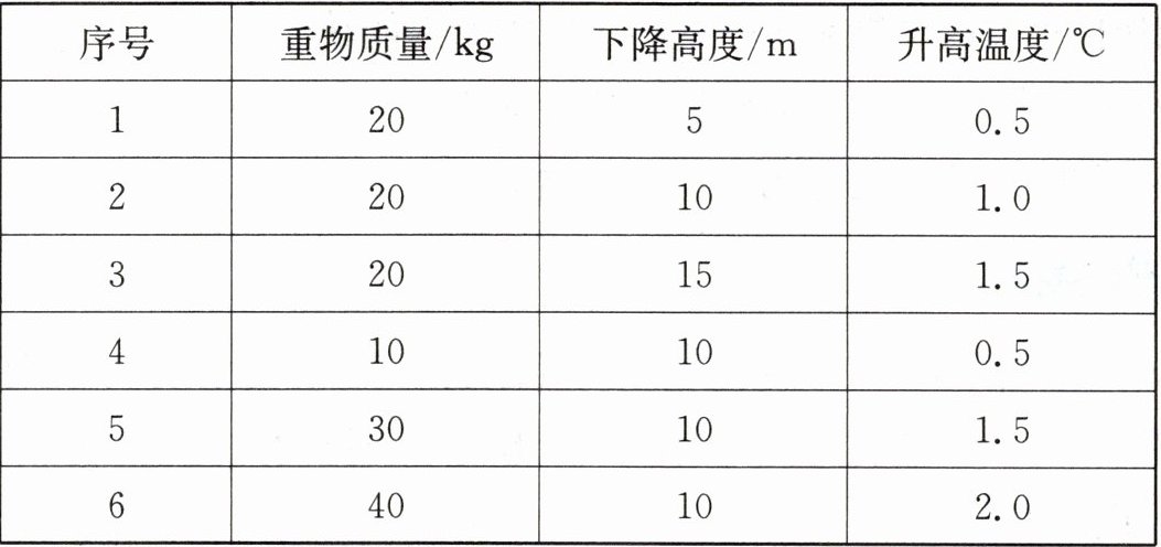 若使容器内相同质量水的温度升高 2.5℃,则 25 kg 的重物需下降