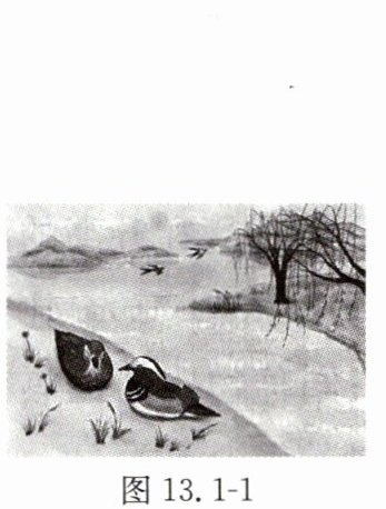 4. 如图13.1 - 1所示是杜甫的诗句“沙暖睡鸳鸯”的画面。艳阳高照,沙子比水更暖和,因为沙子的比热容比水____。已知$c_{水} = 4.2× 10^{3}\ \mathrm{J/(kg· ^{\circ}C)}$,则在标准大气压下,质量为$5\ \mathrm{kg}$的水温度从$30\ \mathrm{^{\circ}C}$升高$20\ \mathrm{^{\circ}C}$,吸收的热量是____$\mathrm{J}$。