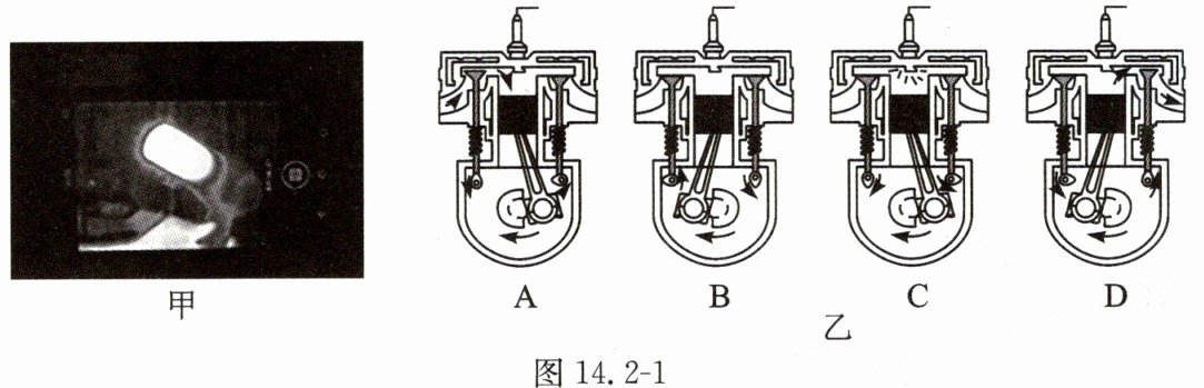 ;在图 14.2 - 1 乙所示的汽油机的四个冲程中,B