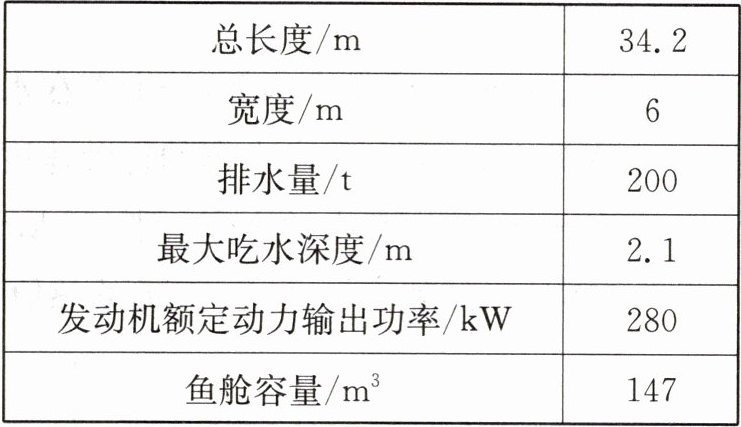 13. 休渔政策有利于海洋渔业持续、稳定、高质量发展。某型号渔船部分参数如表所示。(g 取 10 N/kg)