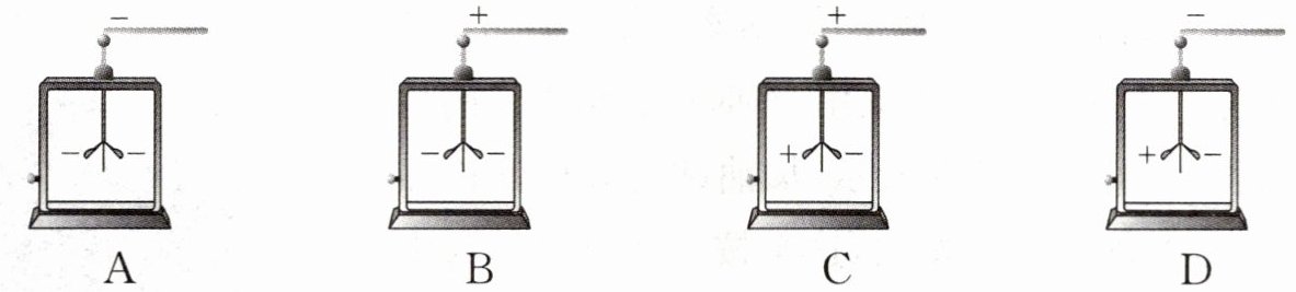 5. 用被毛皮摩擦过的橡胶棒接触验电器,则能正确表示橡胶棒和验电器的两片金属箔的带电情况的是(