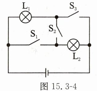 4. 如图15.3 - 4所示,若要使电灯L₁和L₂串联,应闭合开关
