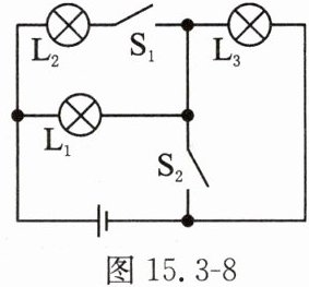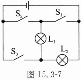 8. 在图15.3 - 7所示的电路图中,若要使灯泡L₁和L₂并联,则应(