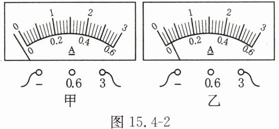 $A$;如图 15.4-1 乙所示,电流表选用的测量范围是0~3