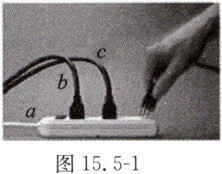 1. 在图 15.5 - 1 所示的插线板中,$ a $ 处接电源,$ b $ 处接台灯,$ c $ 处接电风扇,两个用电器