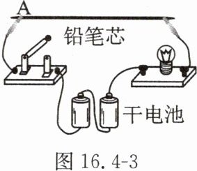 2. 如图 16.4 - 3 所示是小明自制的简易调光灯的电路,闭合开关后灯泡亮了,若小明将夹子 A 向右移动,则说法正确的是(