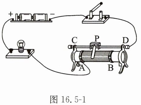 (1) 设计电路:设计电路图时,要使用规定的电路符号,清晰准确地连接电源、开关、滑动变阻器、灯泡等元件;要使元件分布均匀,导线横平竖直,让电路图简洁、直观,便于理解和分析电路。连接电路时,要将电源、开关、滑动变阻器、灯泡依次串联。开关控制整个电路的通断,滑动变阻器按“一上、一下”的方式接入电路,实现对电阻的有效调节。(实验电路可参考图16.5 - 1所示的电路)
