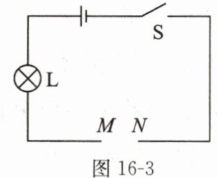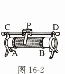 4. 将图 16 - 2 所示的滑动变阻器接入图 16 - 3 所示电路的 $M$、$N$ 之间,当滑片 $P$ 向左端移动时,灯泡 $L$ 逐渐变亮,则滑动变阻器连入电路的接线柱应该是(