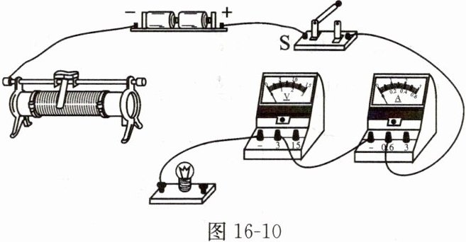 12. 请用笔画线表示导线,按要求正确连接图 16 - 10 所示的实物图。要求:闭合开关,将滑动变阻器的滑片向左移动,灯泡变亮,连线不能交叉。