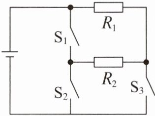8. 某款电热杯有高、中、低三挡,简化电路如图所示。$S_{1}$、$S_{2}$不能同时闭合,阻值$R_{1}为2.5\ \Omega$。只闭合$S_{3}$时,电路中的电流为$2\ A$。水的比热容为$4.2 × 10^{3}\ J/(kg \cdot ^{\circ}C)$。下列说法正确的是(