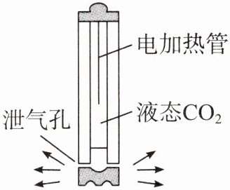 6. (2024·山西中考)二氧化碳($CO_2$)爆破技术是现代工程建设中非常环保的技术,起爆前高压泵将$CO_2$压缩成高压气体,液化后输入爆破筒内。如图所示,爆破时电加热管发热,使筒内的液态$CO_2$迅速汽化,形成的高压气体从泄气孔中喷出,实施爆破。下列说法正确的是(