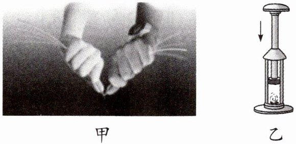 (1)如图乙所示,先在一个配有活塞的厚壁玻璃筒里放一小团硝化棉,然后迅速压下活塞,观察到硝化棉燃烧了起来,这是通过