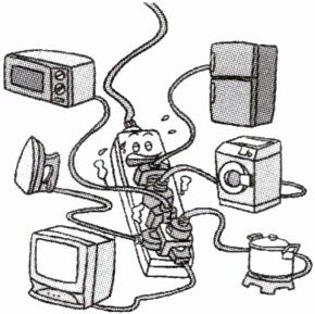 效应,导致线路温度过高,容易引发火灾。图中所示的电路中电流过大的原因是用电器总功率过大